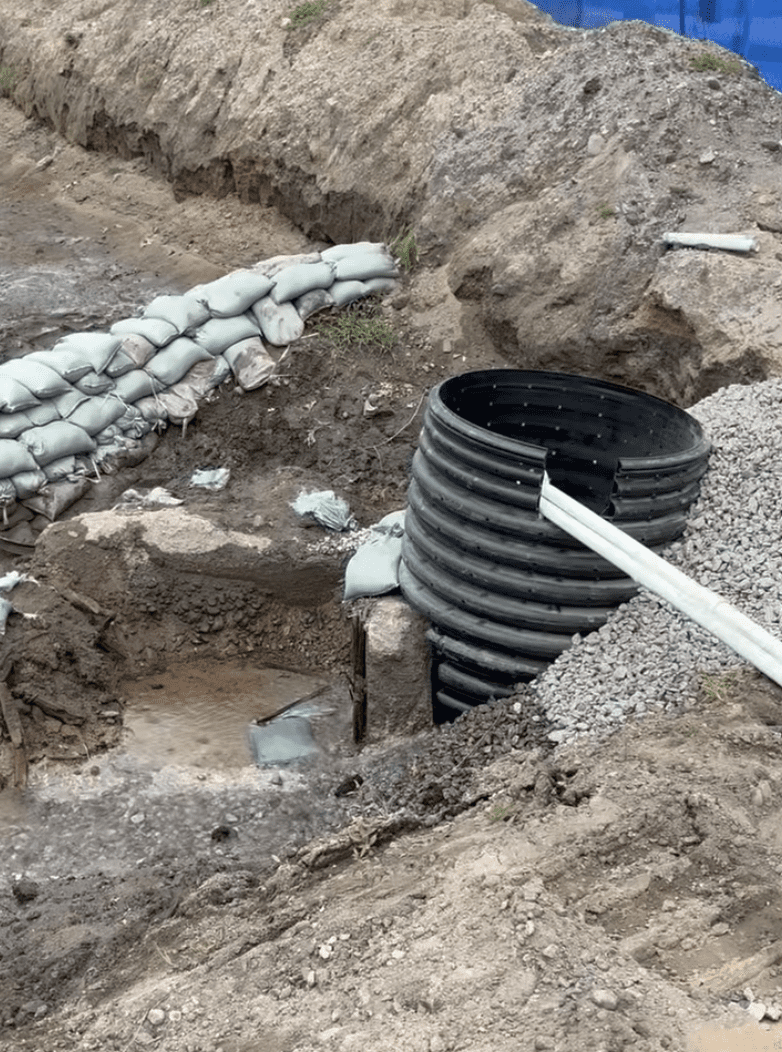 After well over a dozen mandated meetings of a struggling City Council and neighborhood groups that had more politics in mind than really getting a pool open, 2025 was the year to do it – but! What was found underneath explained a lot as a huge drainage pipe not included on any drawings or plans anywhere was found. Construction stopped and plans were made on how to continue building while dealing with the pipe.
