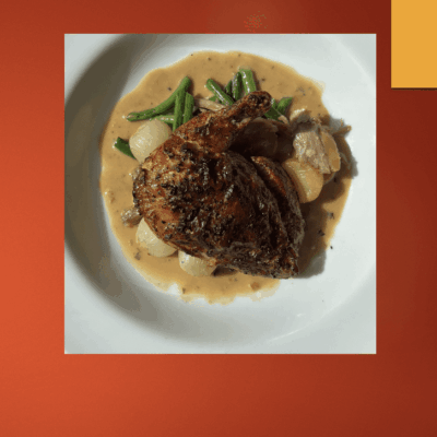 We Cook! Mill’s Tavern Rosemary-Lemon Statler Chicken, Yukon Golds, Haricot Vert and Dijon Demi