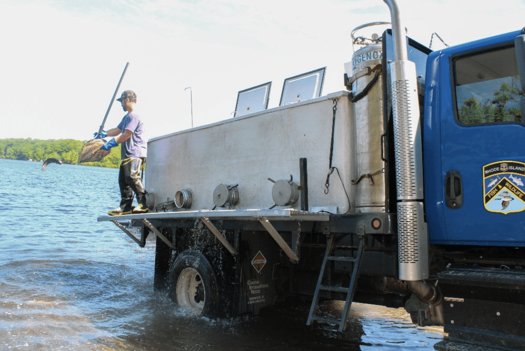The Rhode Island Department of Environmental Management (DEM) has stocked more than 100 freshwater locations, including children’s only ponds, with over 60,000 fish – brook, brown, rainbow, and golden rainbow trout.