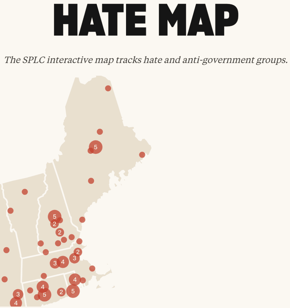 SPLC’s New England “Hate Map” (full US map at link):